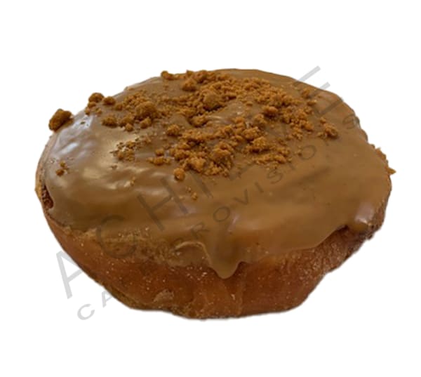 Classic donut dough rolled up into a scroll, featuring a generous serving of cinnamon sugar between each layer. Topped with biscoff spread and a sprinkling of biscoff crumble.