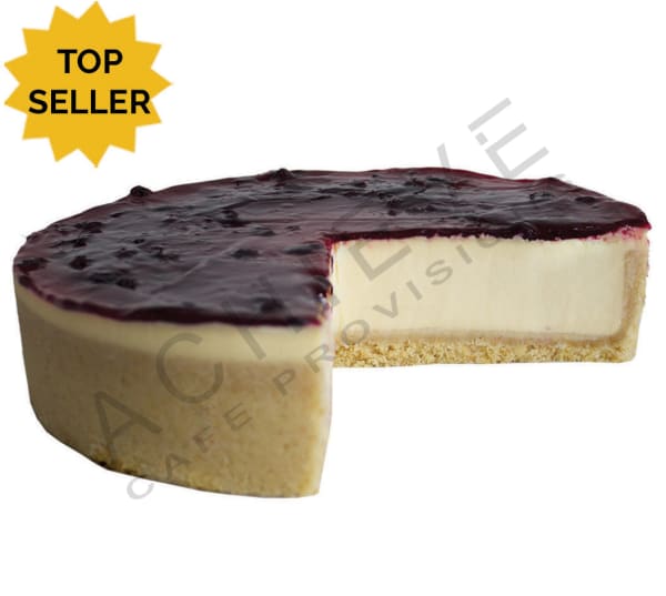 Our slow baked New York cheesecake, on a biscuit crumb base covered in our own blueberry puree